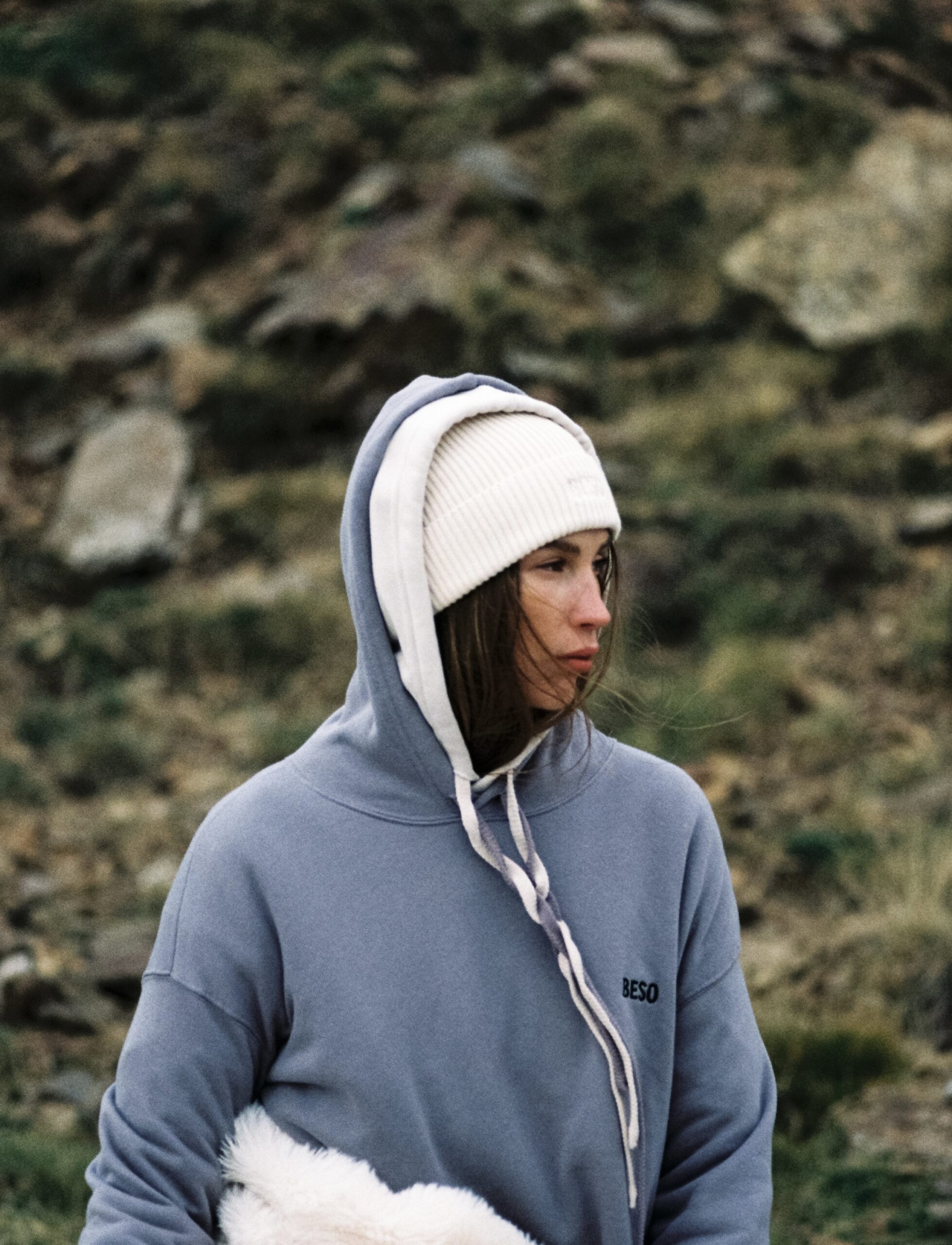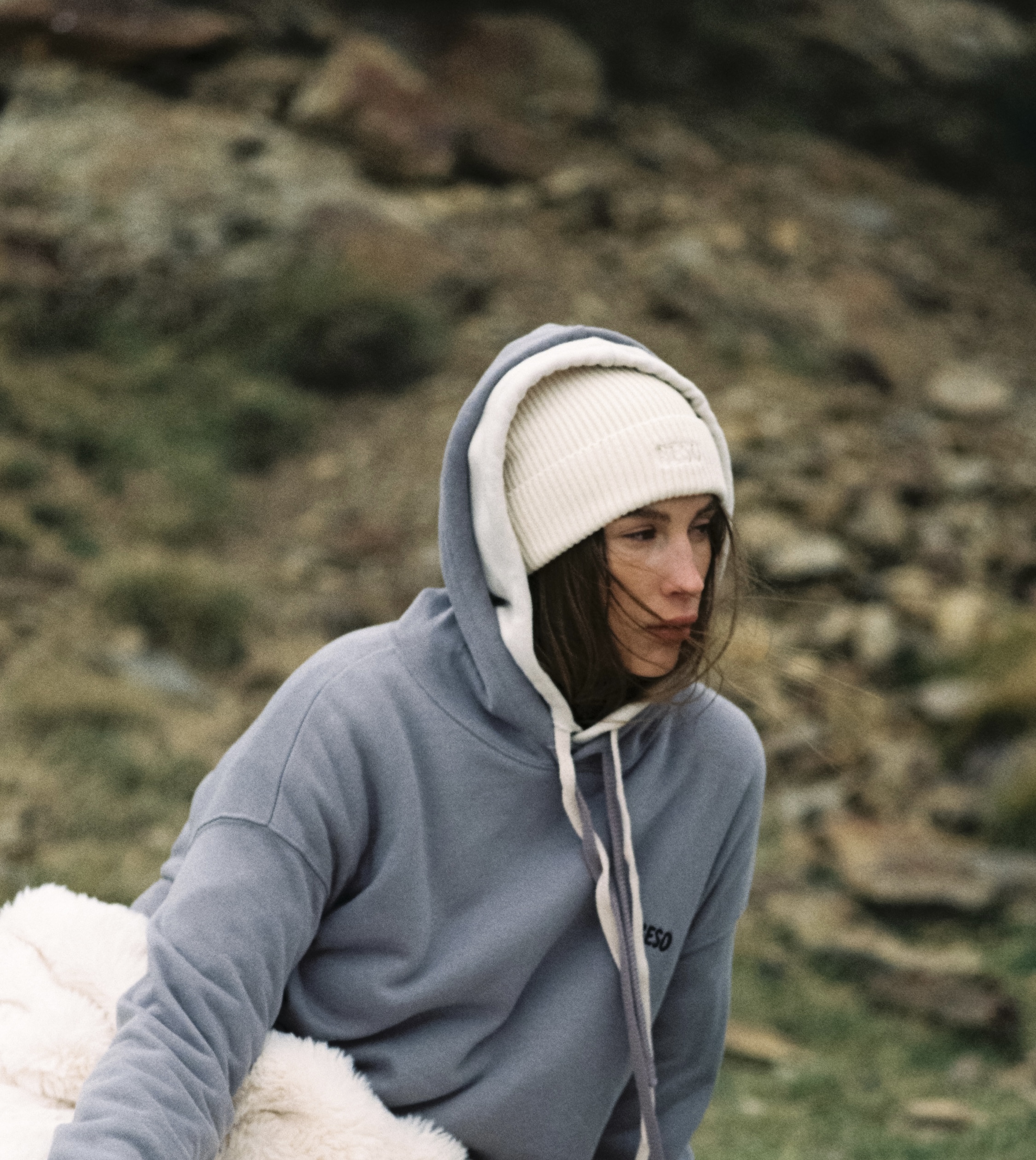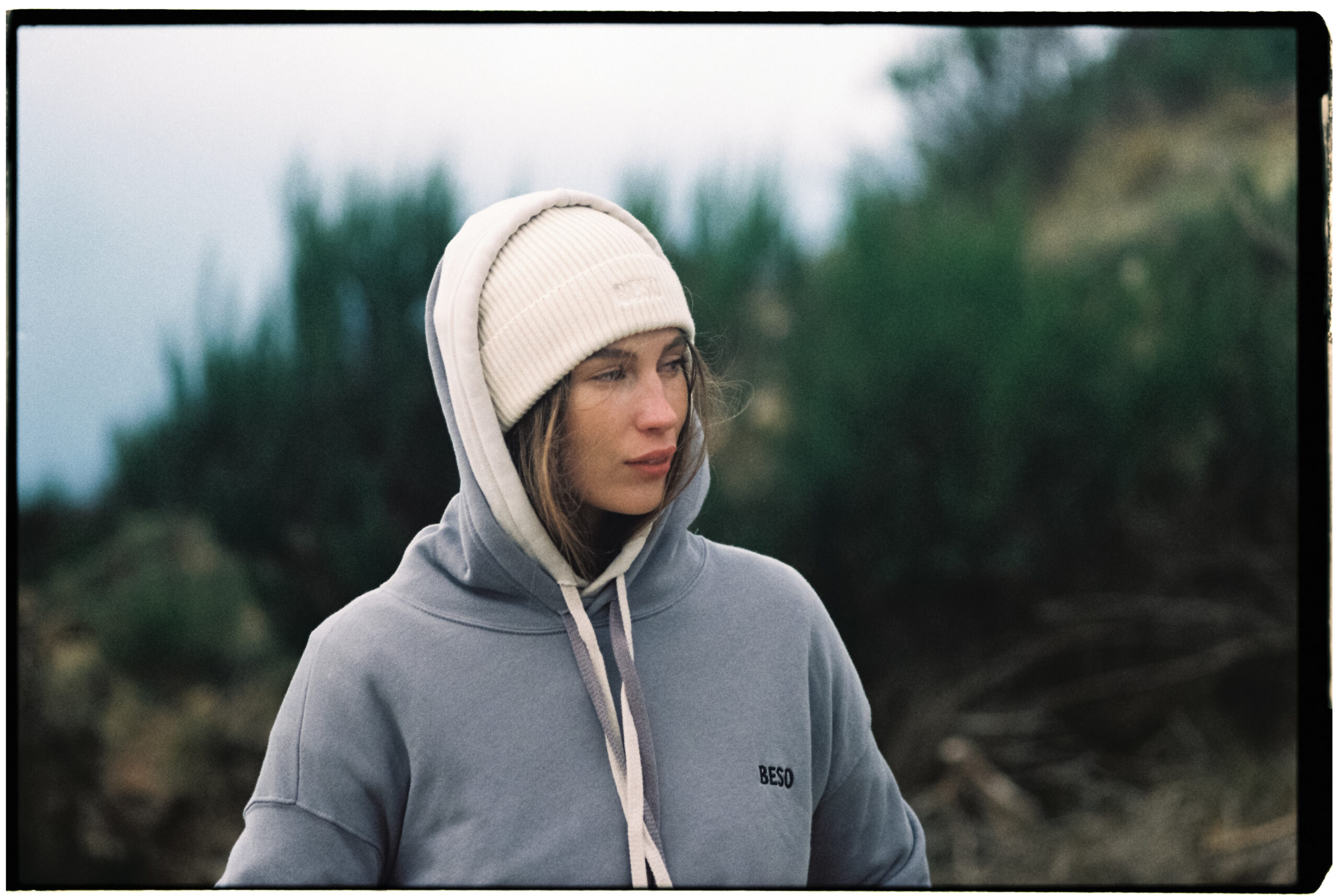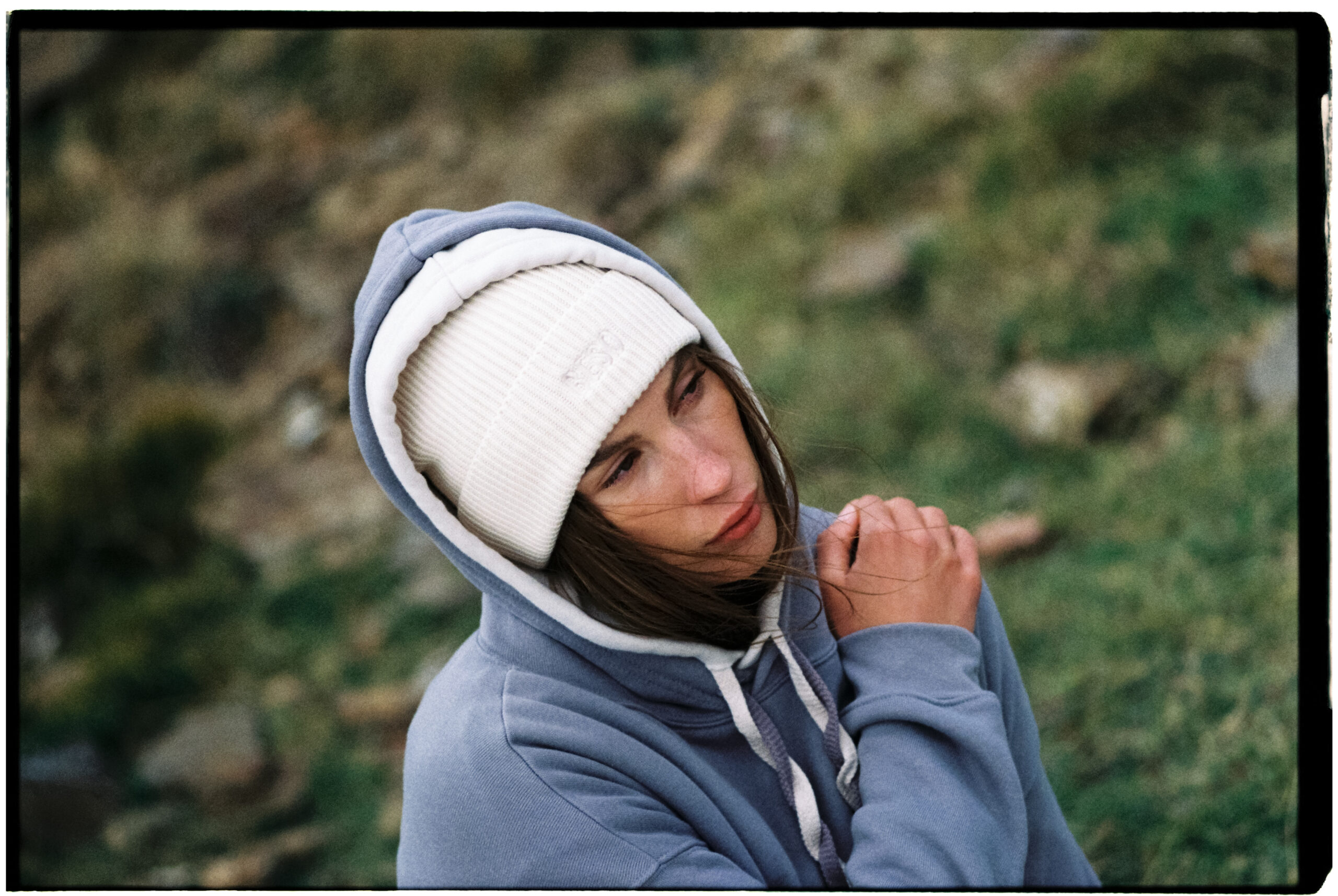 El shooting se construyó en torno a esa idea. Cada línea dentro de la colección —Cozy Mountain, For freedom, Beyond the trees, Into the roots— representaba una forma distinta de vivir el otoño.